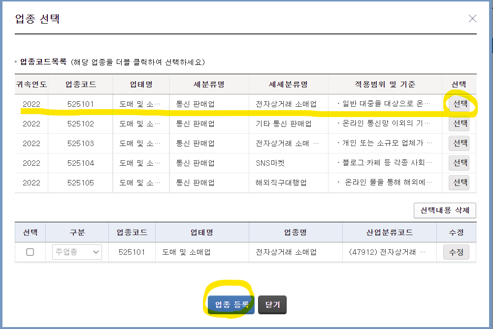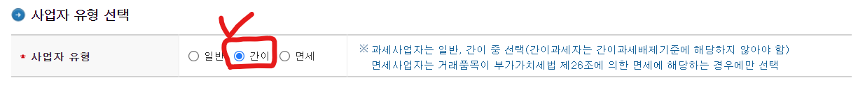 5. 사업자유형 선택