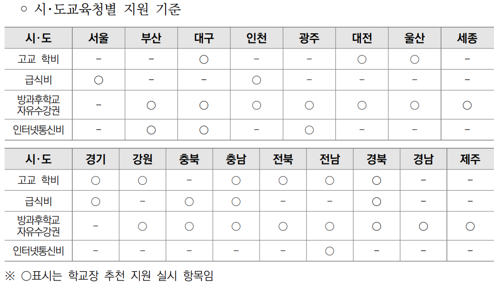 ※ 시도교육청별로 기지원 연도 등에 따라 지원 여부가 다를 수 있음